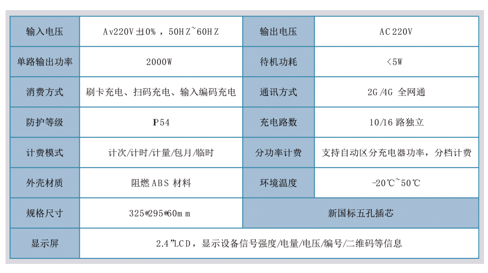●智能识别功能:智能分辨不同容量的电动车,并实施不同扣费标准,非电动车或超出负载,禁止充电